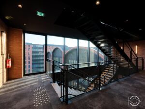 La réhabilitation de la halle existante a nécessité une reprise en sous-œuvre, les équipes construction ont fait appel aux équipes d’OMS Construction Métallique pour la mise en œuvre des coursives et la réalisation des charpentes métalliques en toiture.