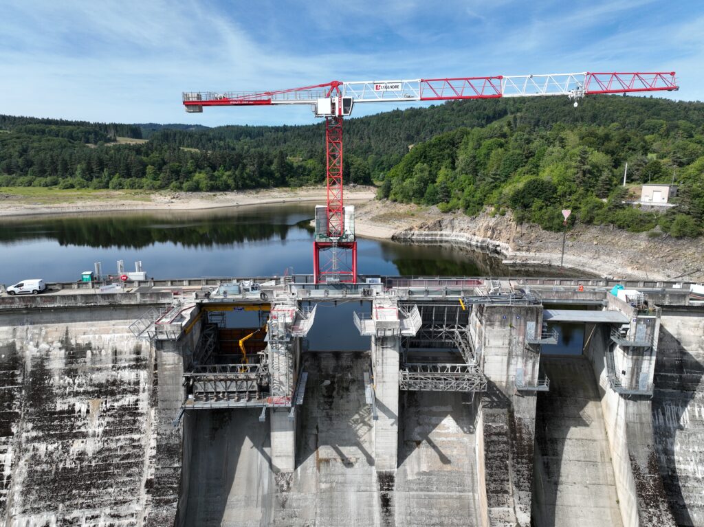 Situé sur un axe de passage, maintenir la circulation sur le barrage a été un véritable challenge. En collaboration avec le pôle Grues du groupe, les équipes ont imaginé une solution sur-mesure : une grue installée sur un portique, permettant aux véhicules de circuler librement en dessous.