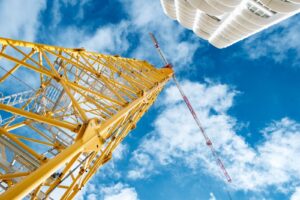 La grue évoluera ensuite en plusieurs phases pour accompagner l’élévation de cette tour.