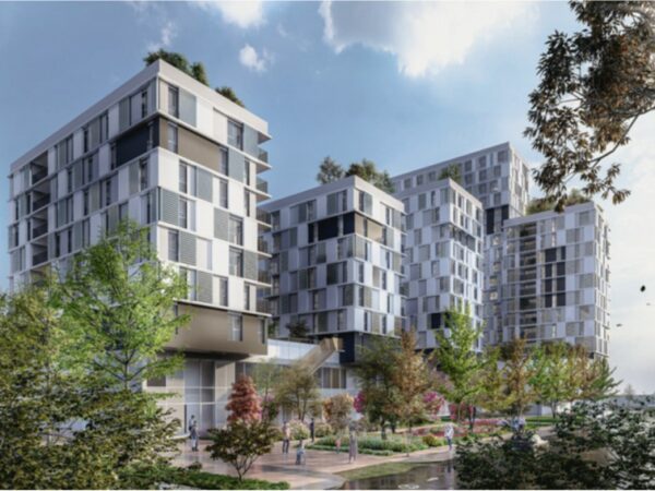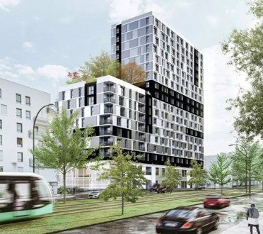 Construction d’un programme immobilier abritant une résidence étudiante de 388 chambres réparties sur 2 plots (a,b) et de 94 logements sociaux sur 3 plots (c,d,e). L’ensemble est positionné sur un socle actif de 2 niveaux comprenant des commerces. L’opération se complète avec un niveau de sous-sol avec 113 places de stationnement.