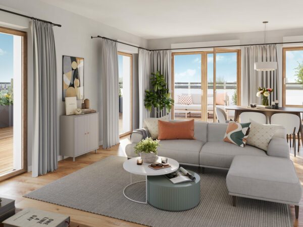 Programme de 84 logements du T2 au T5. Résidence située au sein de l’écoquartier de l’Eau Vive. 3 bâtiments, 1 jardin partagé. 135 places de stationnement en sous-sol et rez-de-chaussée.