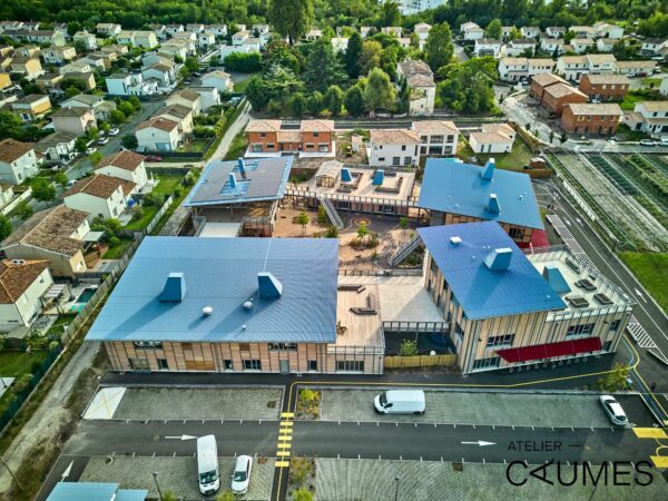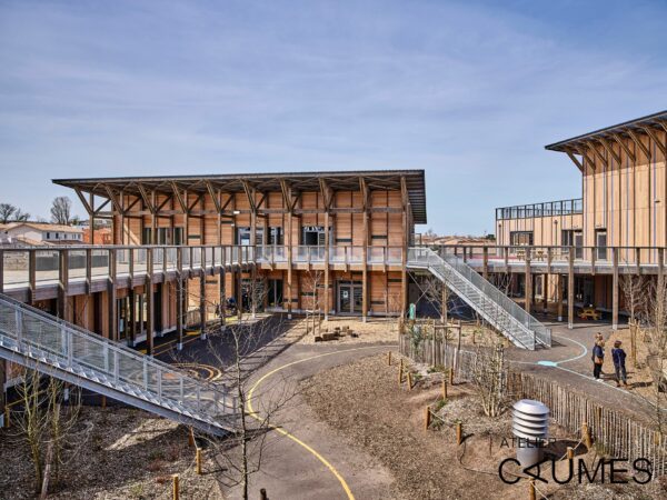 Construction d’un groupe scolaire composé de 16 classes, d’un restaurant et d’un pôle périscolaire. Les 5 bâtiments s’organisent autour d’un ensemble de cours de récréation, et sont reliés entre eux par des passerelles et coursives.