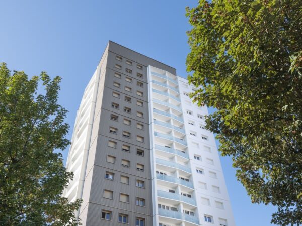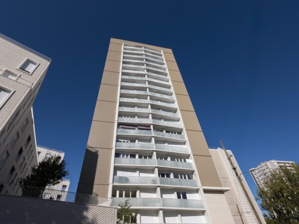 Réhabilitation et résidentialisation en site occupé de la tour A (R+18, 96 logements, un niveau de sous-sol) avec transformation du socle résidentiel en ERP et aménagement des trois premiers niveaux en bureaux.